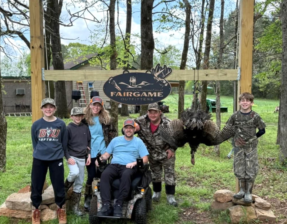 Our family lives near Mountain Top, PA. Jason recently received an exciting opportunity through the Disabled Hunters Program in Pennsylvania. He told them that he wanted to help the kids get their first turkeys. The Disabled Hunters Program made arrangements for Jason and the kids to go to North Carolina to Fair Game Outfitters for a guided hunt. Jason’s cousin Chad Seltzer drove Jason’s outdoor buggy all the way down to North Carolina so he would have it, and he also got to go out with the kids as a mentor.