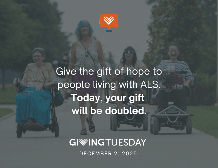 This Giving Tuesday, your impact can be twice as powerful. Every gift you give will be matched, helping to bring hope, support, and resources to the ALS community.