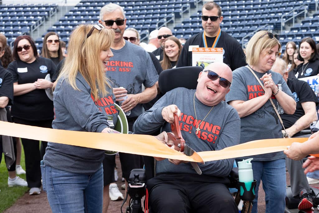 Team Miller! Time officially kicked off the 2025 Scranton ALS United Walk with a ribbon cutting, welcoming all teams to PNC Field. Their team walked in support of Paul Miller, who has been living with ALS since 2012. Joined by his loving wife, Eileen, and a circle of devoted friends and family, Paul paused to take a photo before officially beginning the event.